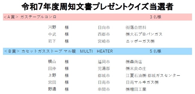 また、C賞およびD賞は宮崎県LPガス協会よりお送りいたします。