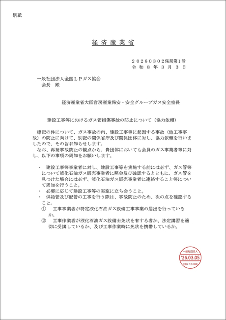 平素より大変お世話になっております。宮崎県LPガス協会です。